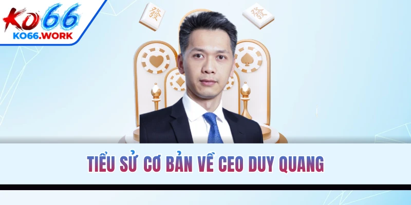 CEO Duy Quang được xem là doanh nhân trẻ đại diện cho tư duy lãnh đạo thế hệ mới. Anh là người đứng sau thành công rực rỡ của nền tảng với kế hoạch đột phá, chiến lược độc đáo. KO66 dưới đường lối đúng đắn của CEO đã trở thành biểu tượng của sự đổi mới trong ngành cá cược trực tuyến.